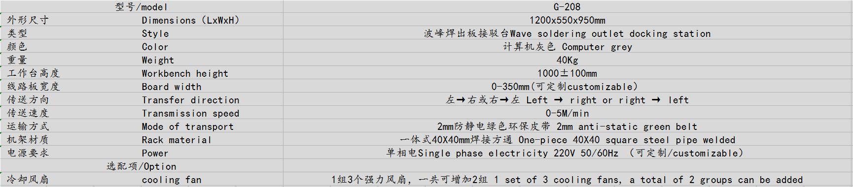 ● 適合用于波峰焊錫機后端輸送接駁臺,滿足車間自動化要求